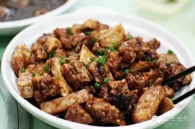 荔枝肉,是长乐的传统名菜,因原料中有土豆和切成十字花刀的猪肉,烹调后皆似荔枝而得名。荔枝肉独具闽菜特色,味道酸甜可口。