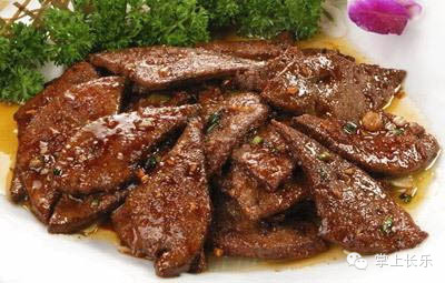 做法:将鳍肝片成长约1寸半,宽约7分的薄皮,放入用酱油、酒、蛋白调成的卤料内拖一拖,再一片片地滚满干菱粉。二、开热猪油锅。将猪肝放入拉一下,拉时,油锅要热,动作要快,以免猪肝出水而发轫,拉好后,倒去锅内的油,随即加入糖、葱、麻油,同猪肝一道翻炒,起锅装盘。