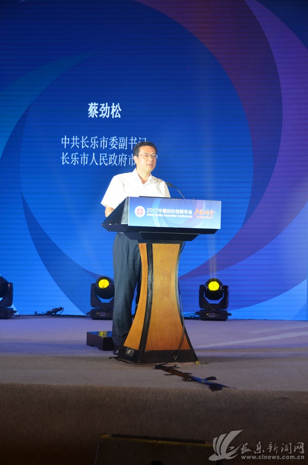 蔡劲松在会上致欢迎辞。他指出,长乐是“草根工业”的发祥地,纺织业作为我市传统支柱产业,经过30多年的培育和发展,已经发展成为技术水平较高、链条较为完整、规模突破千亿的产业集群,现有纺织企业1206家,2016年全市纺织业产值1635亿元,其中规上棉纺业完成产值503.31亿元,先后获评“全国纺织模范产业集群”、“全国纺织行业创新示范集群”、“中国经编名城”。在纺织翘楚林立的长乐,本次峰会的协办单位——福建恒申集团,近年来凭借自身强烈的品牌意识和创新理念,依托全球领先、配置完善的锦纶聚合、纺丝以及氨纶产业链,以行业领军者的姿态,逐步将“恒申制造”升华为“恒申创造”,走出了具有长乐特色的创新研发之路,成就了高品质、高附加值的品牌效应。