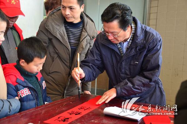 2月1日,长乐区书法爱好者在为村民们书写廉政春联。
