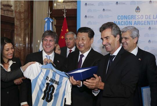 2014年7月19日上午,习近平会见了阿根廷副总统兼参议长布杜和众议长多明格斯。会见后,布杜向习近平主席赠送了阿根廷国家足球队10号球衣。