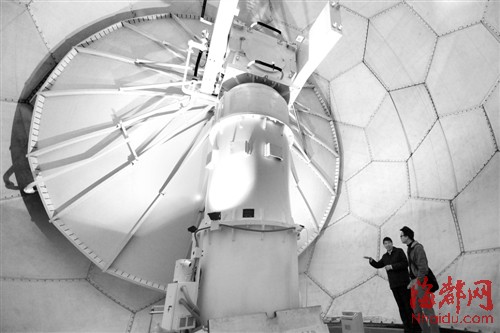 昨日记者探访长乐雷达站。站长张扬成带记者爬到楼顶,钻进了这个庞大的白色球状体,一窥究竟。据介绍,这个球状体叫雷达罩,高近10米,由玻璃钢制成,能防雨防潮,还能抵抗12级台风。